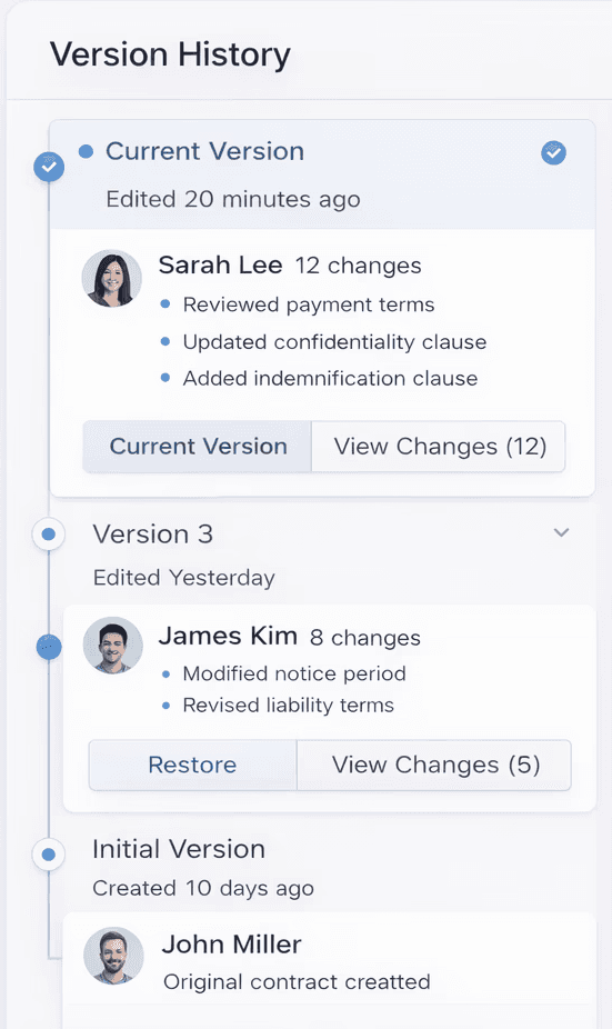 A clear, decision ready summary highlights all meaningful changes in concise bullet points. Designed for quick reviews, approvals, and stakeholder communication without needing to scan entire documents.