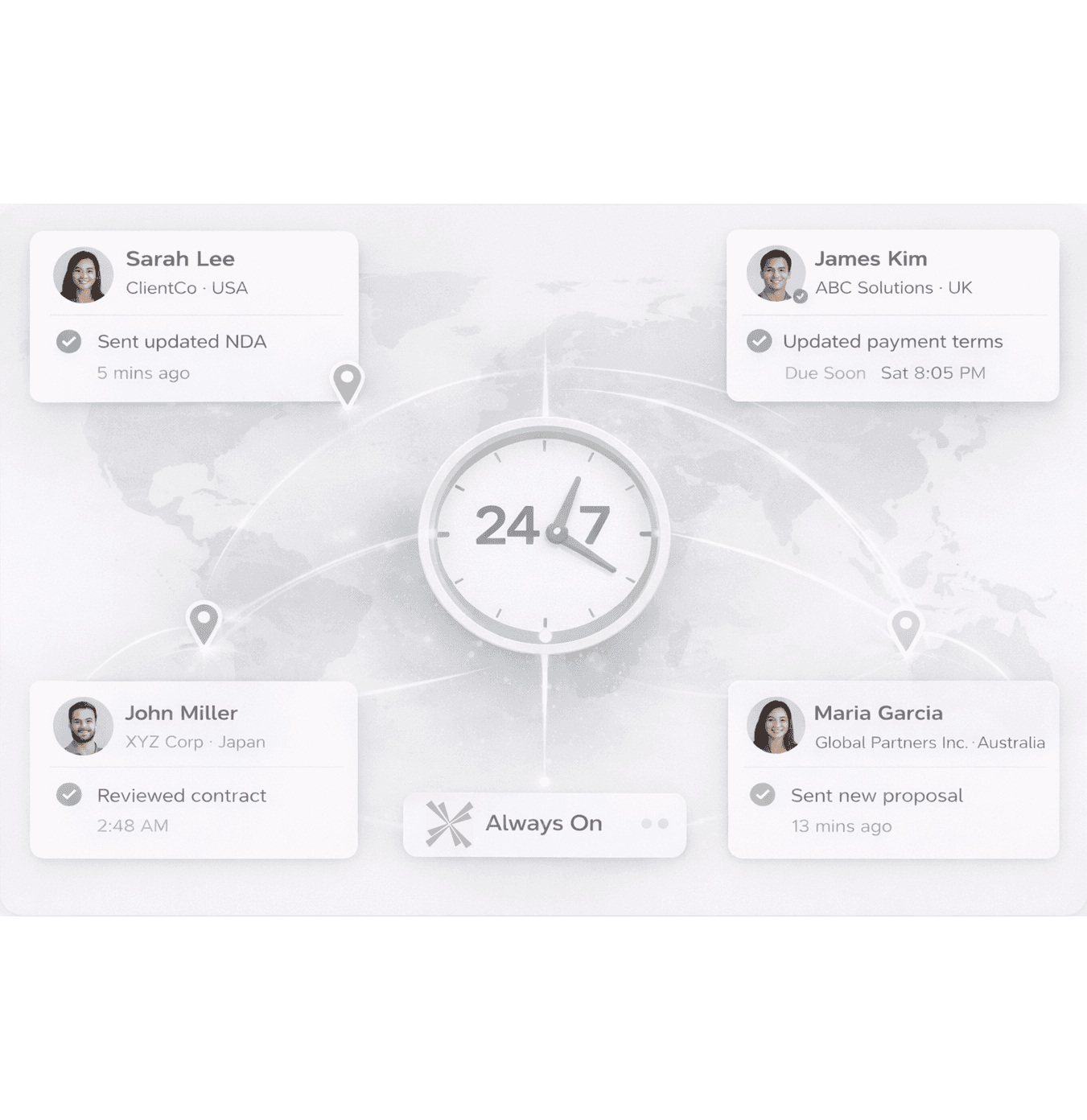 Handle higher legal volume by extending your team with agents that execute work continuously.