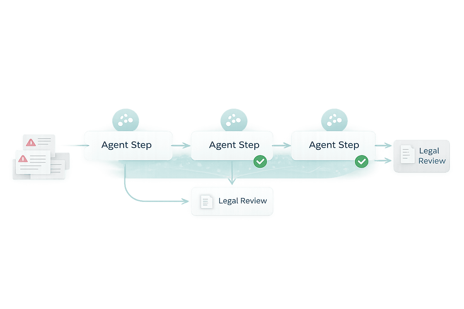 Legal teams stay in control, stepping in where judgment is required, while agents handle the heavy lifting.