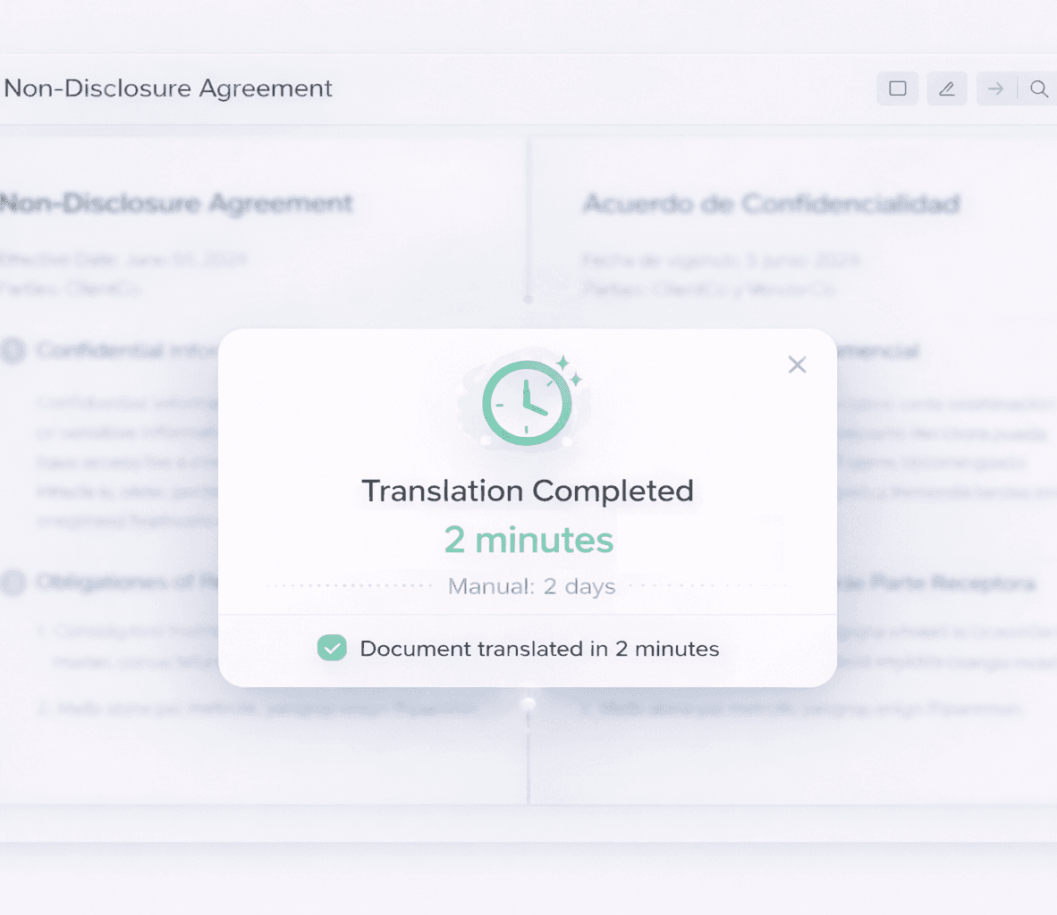 Skip manual translation and convert documents in minutes, not days.