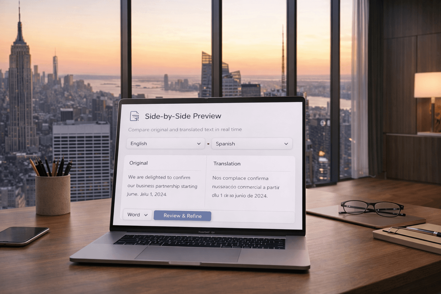 Compare original and translated text in real time.